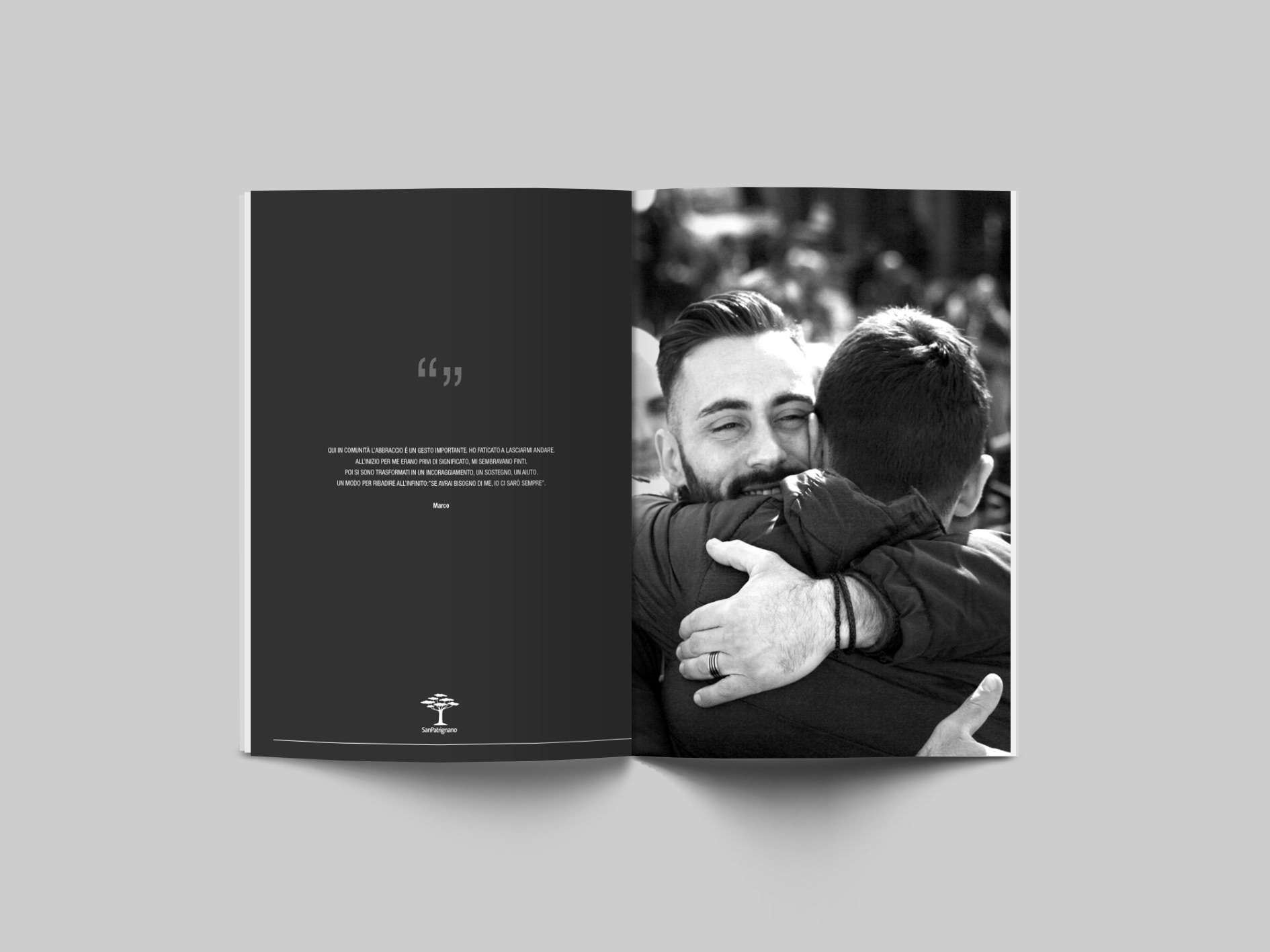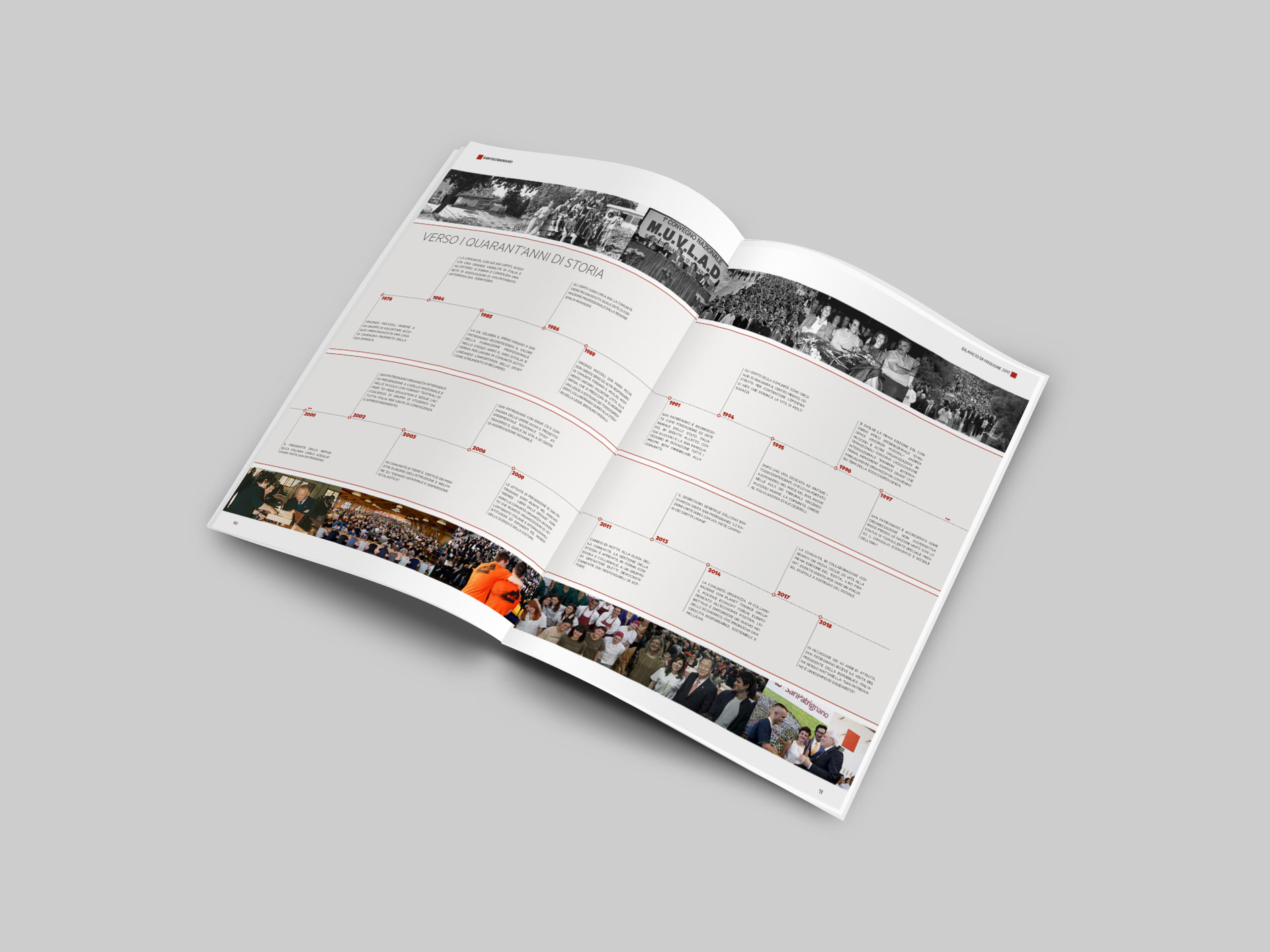 Progettazione e sviluppo dell'impaginato editoriale stampato per Bilancio di missione 2017 per San Patrignano. Presentato nel 2018, anno in cui la fondazione San Patrignano compie 40 anni e riceve la visita del Presidente Mattarella.
